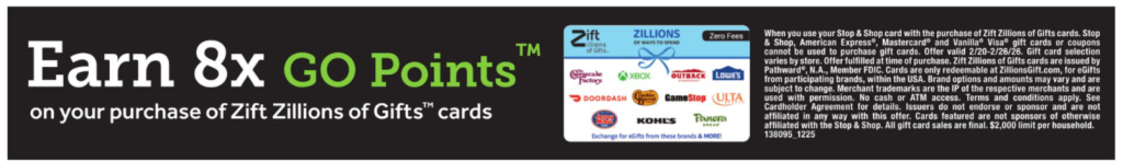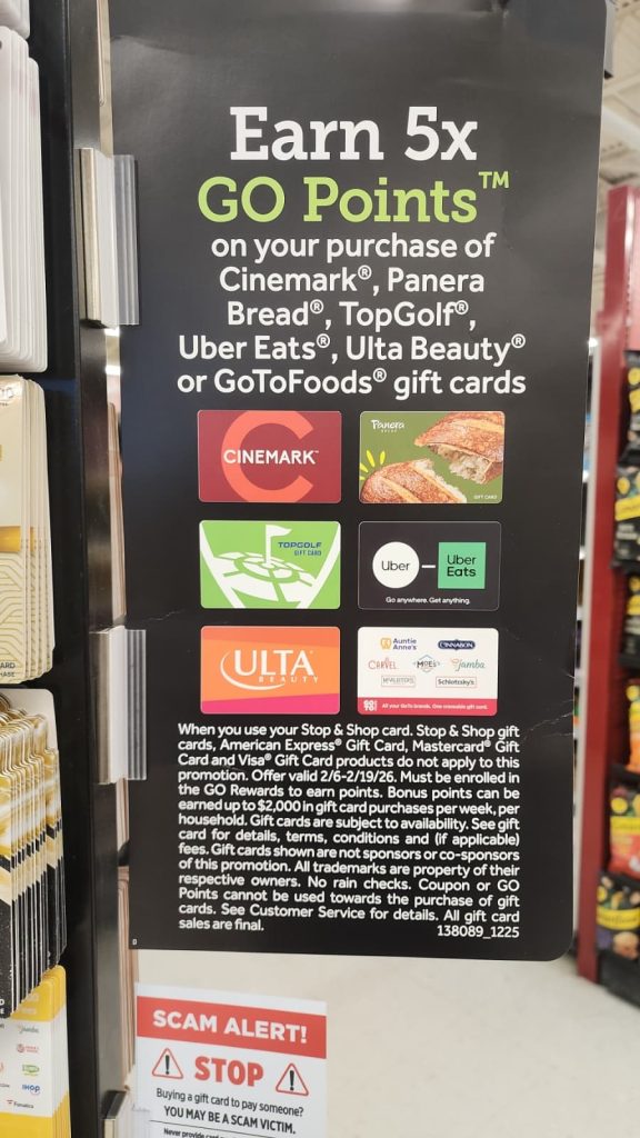 Stop & Shop: Earn 5x GO Rewards Points on Cinemark, Panera, Topgolf, Uber, Ulta and GoTo Foods Gift Cards