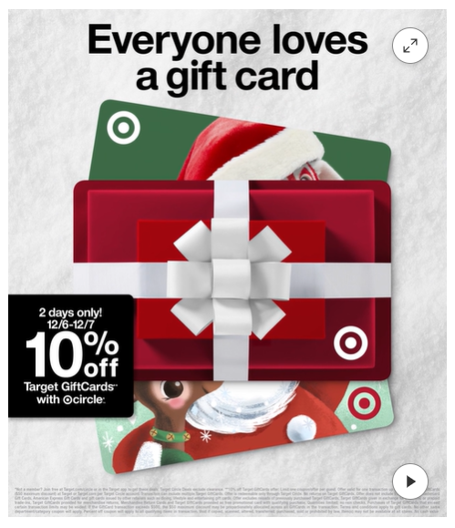 - 10% off Target GiftCards deal: Deal is available only to Target Circle members and is redeemable only through Target Circle