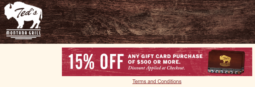 Receive 15% off your gift card purchase of $500 or more. No code required.
