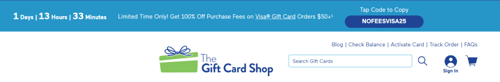 100% off purchase fees on Visa gift card orders of $50 or more with promo code: NOFEESVISA25