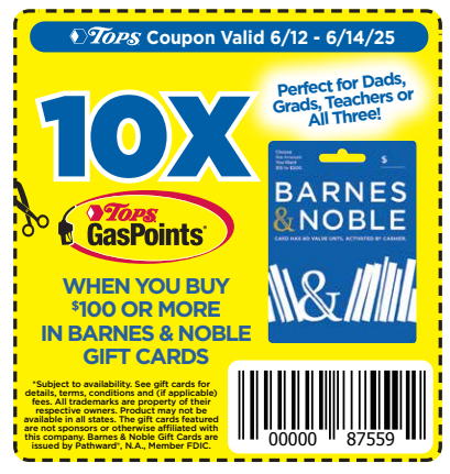 [EXPIRED] Tops: 10X GasPoints on $100 Barnes & Noble Gift Cards