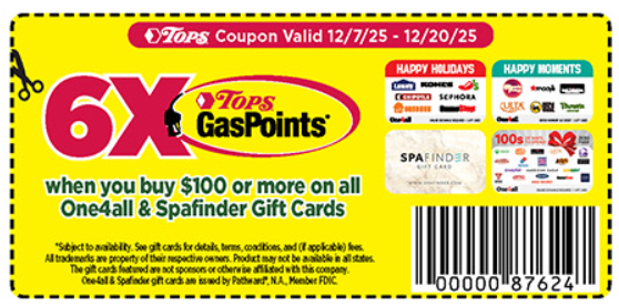 One Comment on “Tops: 6X GasPoints on $100 One4All and SpaFinder Gift Card Purchases”