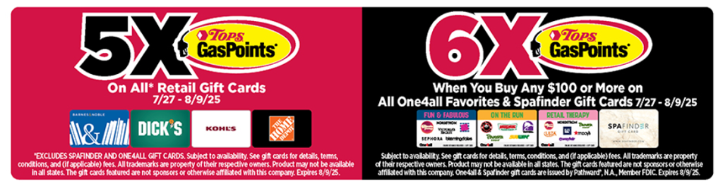 [EXPIRED] Tops: 6X GasPoints on $100 One4All Favorites and Spafinder Gift Cards | 5X GasPoints on All Third Party Gift Cards