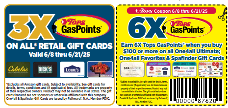 2 Comments on “[EXPIRED] Tops: 6X GasPoints on $100 One4All Ultimate, One4All Favorites and Spafinder Gift Cards | 3X GasPoints on All Third Party Gift Cards”